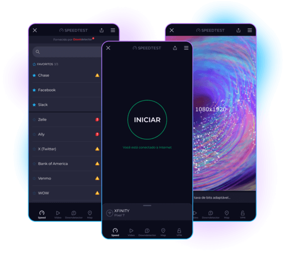 Nossa missão no Speedtest by Ookla® é tornar a Internet mais rápida, fornecendo dados e percepções sobre as velocidades reais da Internet. Com bilhões de testes em todo o mundo, vamos até você com aplicativos para os dispositivos que você mais usa.